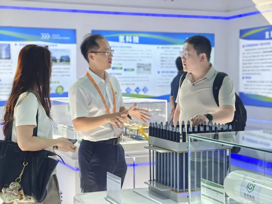 第三屆西部氫能博覽會期間,陜西氫能展區(qū)憑借全面的氫能產業(yè)鏈內容及豐富展品,占據展會焦點位置,展區(qū)內人潮如織,洽談咨詢聲此起彼伏,亮點紛呈。省市多位領導蒞臨展區(qū)參觀指導工作,公司黨委書記、董事長黃曄等領導匯報工作開展情況。