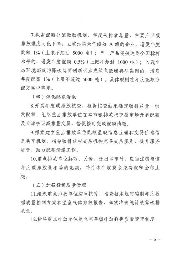 為貫徹落實加強全國碳市場建設工作部署,進一步完善地方碳排放權交易機制,我們按照有關要求制定了《天津市深化地方碳排放權交易市場建設工作方案》。現印發給你們,請認真組織實施。