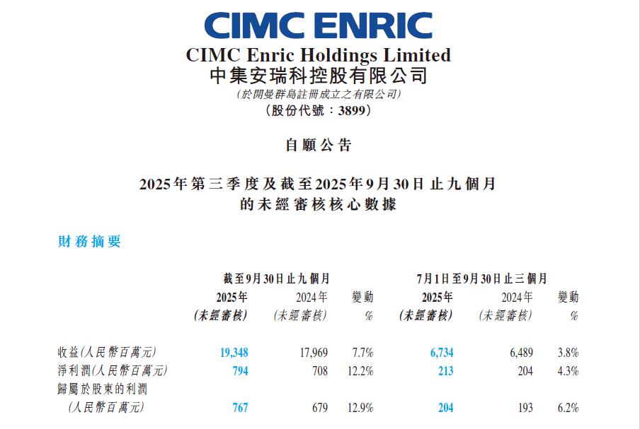 中集安瑞科控股有限公司及其附屬公司(統稱“中集安瑞科”或“集團”)(股份代號:3899.HK)今天欣然公布2025年三季度營運數據。2025年前三季度,集團收入同比增長7.7%至約人民幣193.5億元(人民幣,下同);歸母凈利潤穩定持續增長達7.7億元,同比提升12.9%。