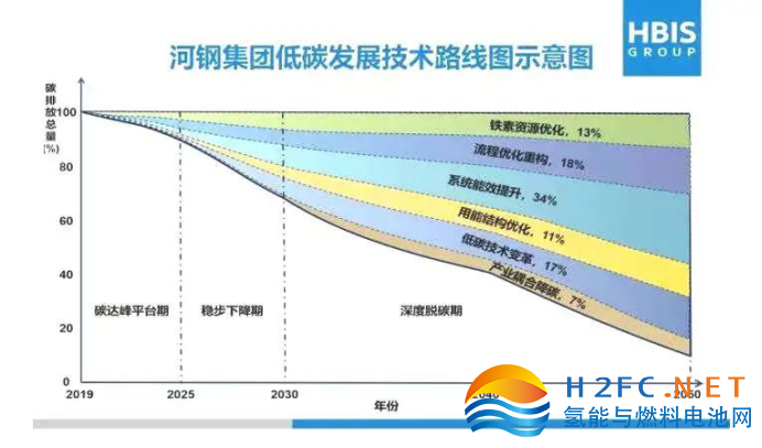 3月2日,中國氫能聯(lián)盟副理事長單位河鋼集團(tuán)召開低碳發(fā)展技術(shù)路線圖(以下簡稱“《路線圖》”)發(fā)布會(huì),現(xiàn)場發(fā)布了河鋼集團(tuán)推進(jìn)碳達(dá)峰碳中和的低碳發(fā)展目標(biāo)和“6+2”低碳技術(shù)路徑。《路線圖》指出,河鋼集團(tuán)低碳發(fā)展將經(jīng)歷“碳達(dá)峰平臺(tái)期、穩(wěn)步下降期及深度脫碳期”三個(gè)階段,通過實(shí)施六大技術(shù)路徑和建設(shè)兩大管理平臺(tái),實(shí)現(xiàn)2025年較碳排放峰值降低10%,2030年較碳排放峰值降低30%,并最終在2050年實(shí)現(xiàn)碳中和。