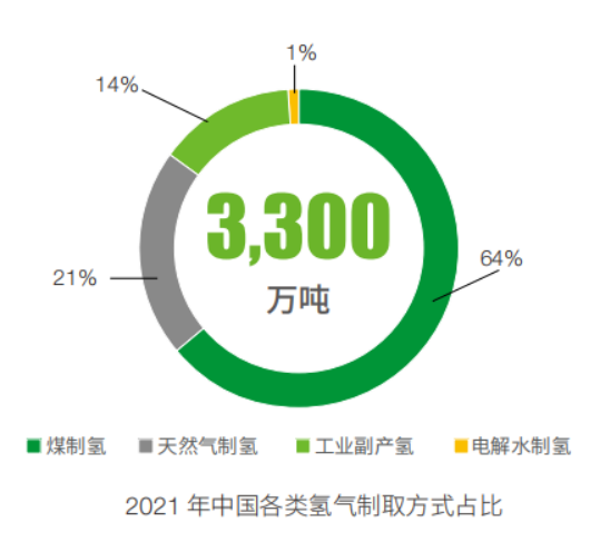 氫能生產:中國是世界上最大的制氫國,2021 年制氫產量超過3,300萬噸,其中,達到工業氫氣質量標準的約1,200萬噸。從區域分布看,中國氫氣產能主要集中在西北、華東和華北地區。