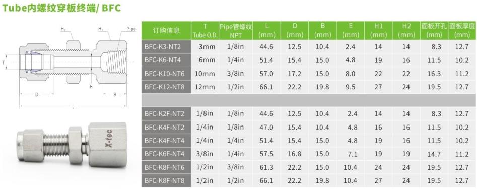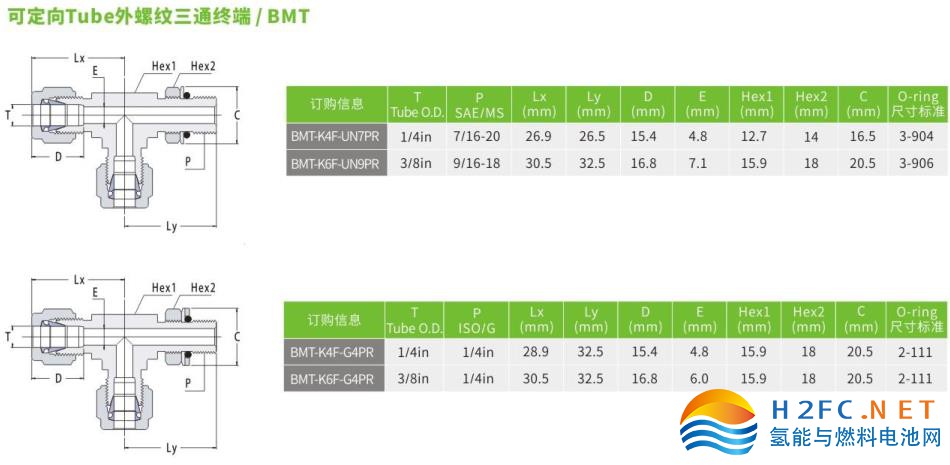 10.Tube內錐管螺紋終端 / FC 24.Tube儀表變徑終端 / GR 38.可定向Tube外螺紋三通終端 / BMT