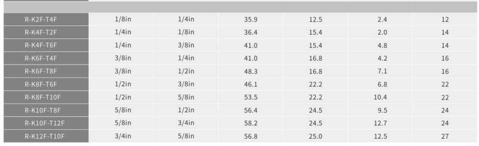 5. Tube直通變徑終端 / U 19.Tube管適配 / TA 33.Tube內螺紋彎通終端 / FL