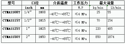 科里奧利質量流量計LF-CT 型號口徑選擇