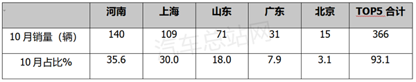 1、10月河南躍升第一;TOP5占比超9成。