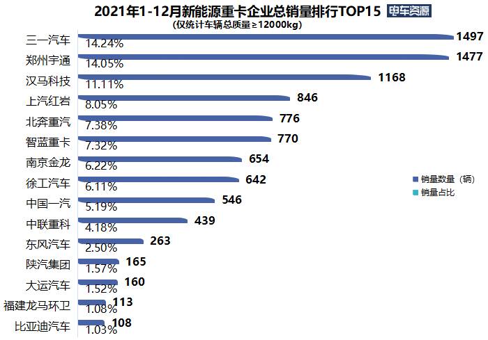圖一 2021年新能源重卡企業(yè)總銷(xiāo)量排行榜(圖片來(lái)源:電車(chē)資源)