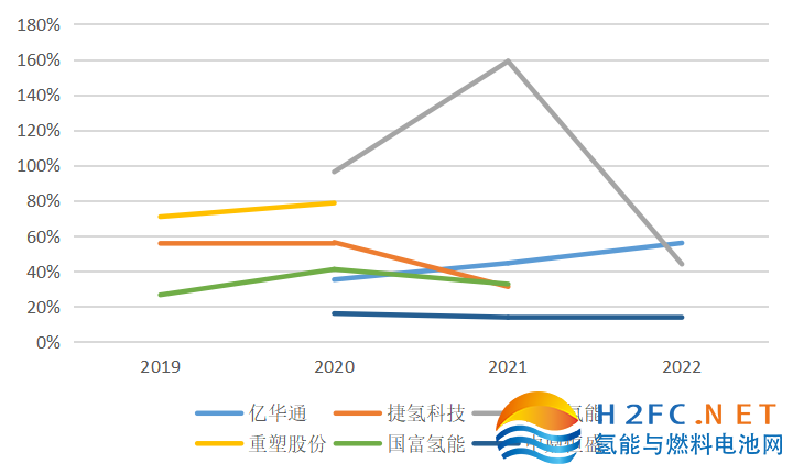 我們選取8家披露公司數據的氫能上市公司或遞交招股說明書的擬上市公司作為樣本,來分析氫能行業。