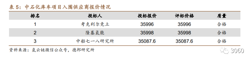 2.設備電耗:庫車項目 52 臺套電解槽由考克利爾競立、隆基氫能、中船 718 所三家企業提供,根據三家企業提供的電耗參數,我們預計庫車項目電解槽 電耗在 4.3KWh/Nm3,制氫系統綜合電耗為 4.9 KWh/Nm3。