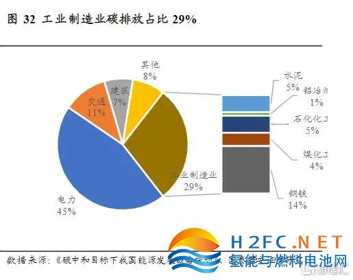從總量上看,我國目前是全球碳排放第一大國,2020年,我國能源消費總量為49.8億噸標準煤,能源相關的二氧化碳排放量約99億噸,占全球比例為30.7%,工業制造業碳排放占比29%,單單鋼鐵領域所輸出的碳排放量已經高達14%。