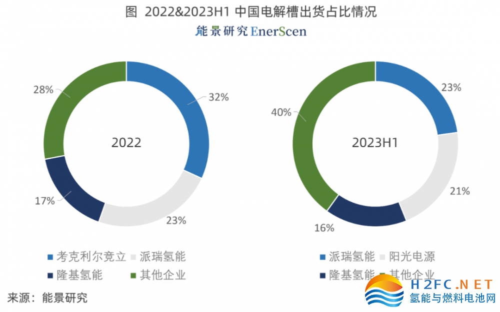 2023H1 電解槽市場需求超過2022年,市場集中度下降。